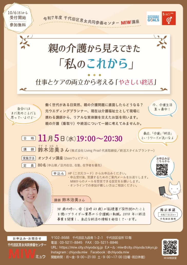 MIW講座「親の介護から見えてきた「私のこれから」~仕事とケアの両立から考える『やさしい終活』」