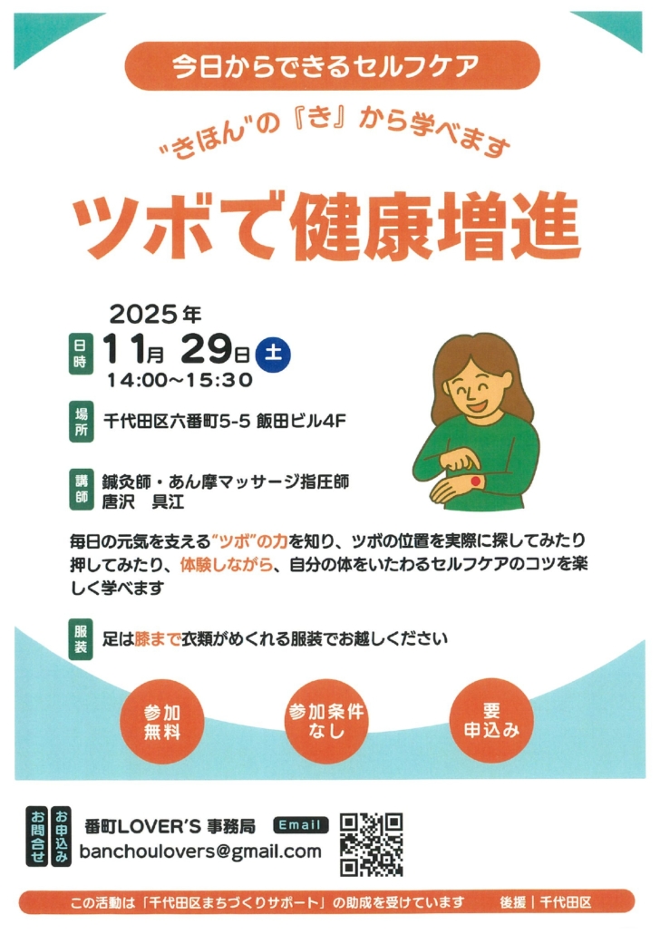 毎日の元氣を支える「ツボ」の力を知り、ツボの位置を探して押してみたり、体験しながらセルフケアのコツを楽しく学べるイベントです。