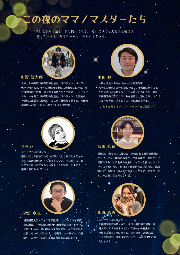 スナックちよだ~千代田で活動する人たちが、ママ・マスターになる夜~