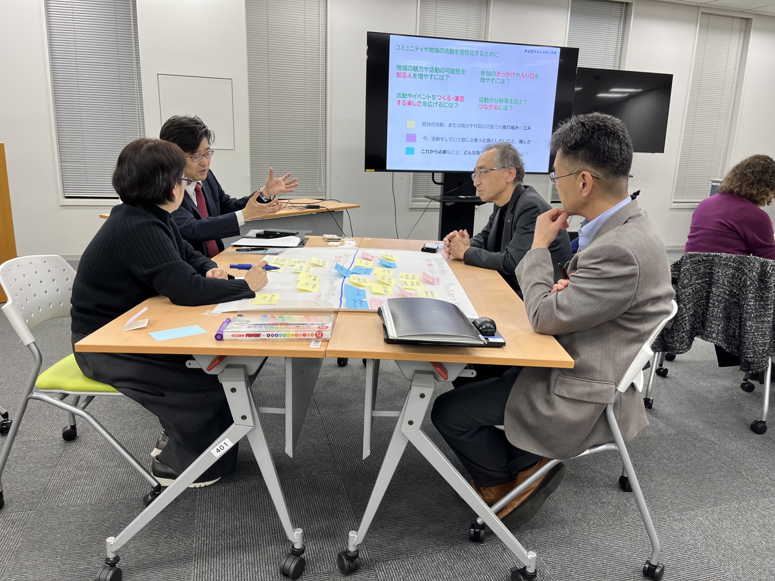 令和8年1月13日~1月30日に、「千代田での活動の経験・工夫をシェアする会」を、町会や地域の活動をしている方、企業の方などに参加頂き、各地区で4回開催しました。