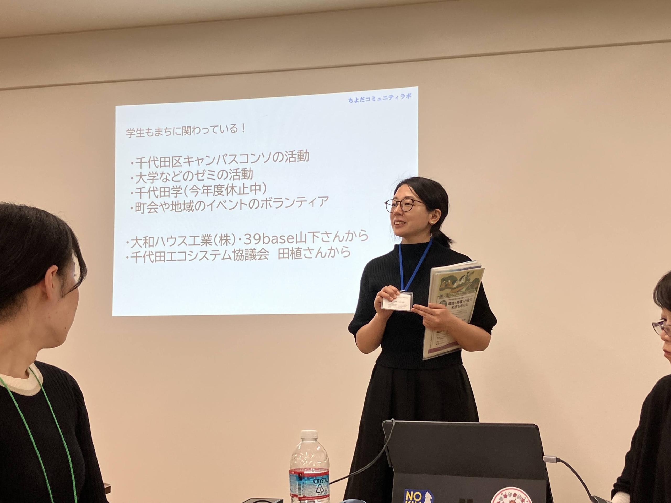 地域で学生が関わる実例として、39base(大和ハウス工業(株))の山下さんと、千代田エコシステム推進協議会の田植さんから、取組みの紹介がありました。