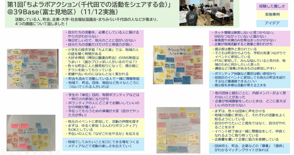 地域の課題の詳細は、「千代田での活動をシェアする会」のレポートにも掲載しています。