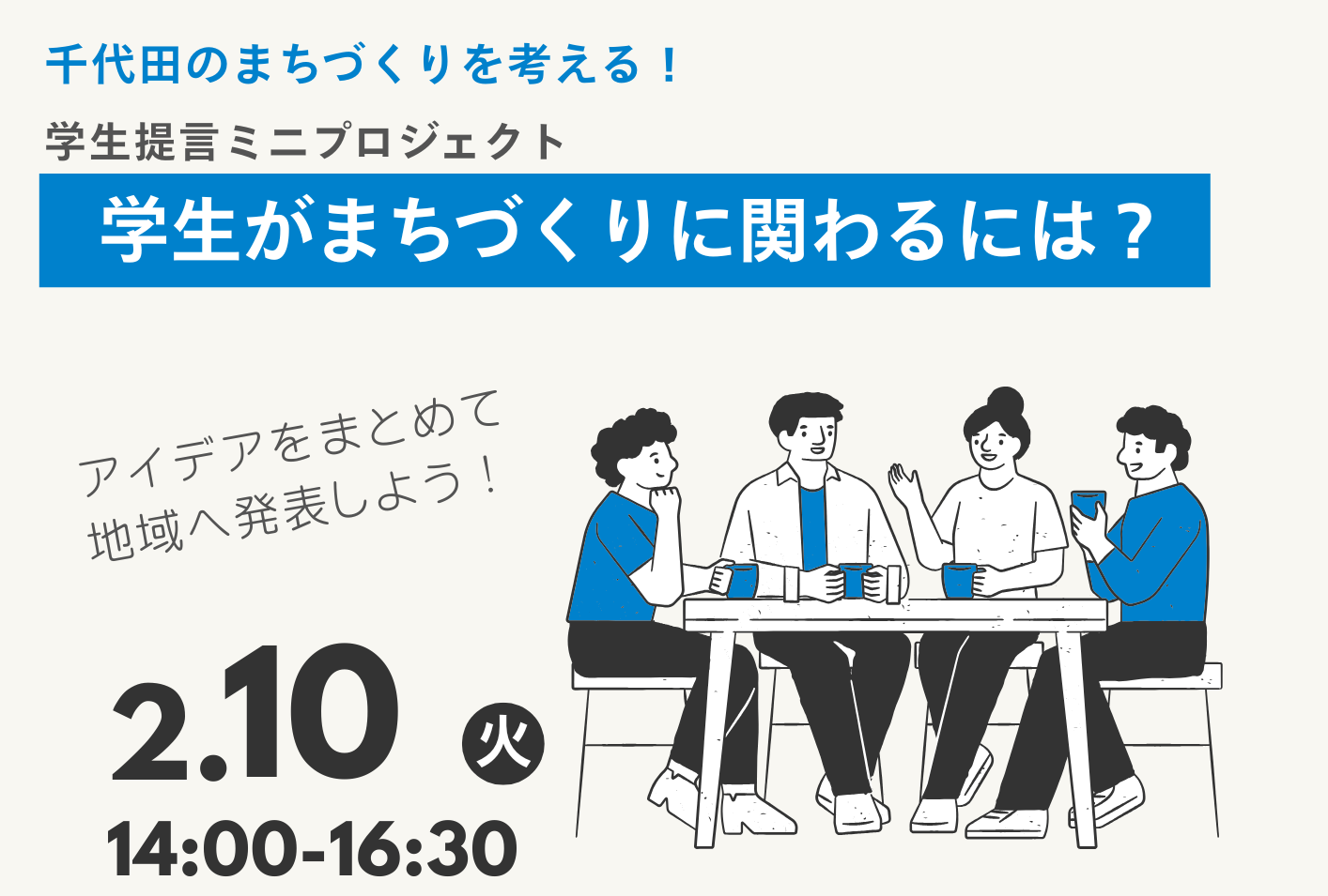 ※原則、2月21日のちよだコミュニティラボライブ!(千代田区区役所にて開催)にも参加できる方とします。2月10日のみという方はご相談下さい。 - 主 催:ちよだコミュニティラボ